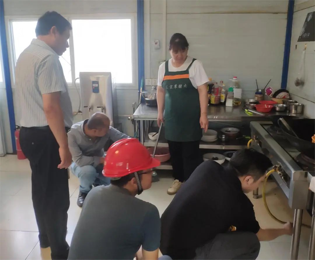 此次檢查行動,重點排查了項目工地液化氣鋼瓶是否存在占壓、漏氣、銹蝕,灶具連接軟管是否存在老化、開裂、漏氣、接口松動,燃?xì)庠罹呤欠衽c氣源相匹配、超期使用,已安裝的可燃?xì)怏w報警裝置是否能正常使用等問題,同時多角度、全方位向食堂工作人員講解燃?xì)獍踩R,提醒定期對液化氣瓶的連接軟管、灶具開關(guān)、減壓閥等進行檢查,全面提升工作人員的燃?xì)獍踩庾R及異常情況應(yīng)變處置能力。
