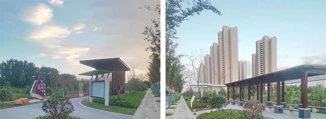 合心河路景觀綠化提升工程位于長江路學校南側(cè),充分利用邊角地、閑置地區(qū)域鋪設草坪、種植苗木、增設涼亭等,實現(xiàn)“見縫插綠”,打造方便、小巧的適合游憩的綠化活動場地。
