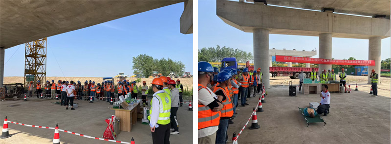 為切實(shí)保障高溫天氣下施工人員的生命健康安全,提升項(xiàng)目應(yīng)對(duì)突發(fā)高溫中暑事件能力,鹽洛高速步鳳互通項(xiàng)目按照2025年“安全生產(chǎn)月”方案要求,開(kāi)展了高溫防暑應(yīng)急演練活動(dòng)。現(xiàn)場(chǎng)模擬了一名路基工人因高溫中暑暈倒的場(chǎng)景,現(xiàn)場(chǎng)負(fù)責(zé)人收到信息后迅速響應(yīng),即刻啟動(dòng)高溫中暑現(xiàn)場(chǎng)處置預(yù)案。應(yīng)急救援小組接到通知后,第一時(shí)間攜帶急救設(shè)備和防暑藥品趕赴現(xiàn)場(chǎng),將中暑工人轉(zhuǎn)移至陰涼通風(fēng)處,松解衣物散熱,并通過(guò)濕毛巾冷敷、喂服藿香正氣水等措施緊急救治。同時(shí),現(xiàn)場(chǎng)疏散小組迅速組織其他施工人員有序撤離至安全區(qū)域,避免因慌亂造成二次事故。在各小組緊密配合下,演練取得圓滿成功。演練后還邀請(qǐng)鹽城市紅十字會(huì)相關(guān)人員對(duì)項(xiàng)目參建人員進(jìn)行了高溫中暑處置培訓(xùn),切實(shí)提高項(xiàng)目人員的處置能力和處置規(guī)范性。